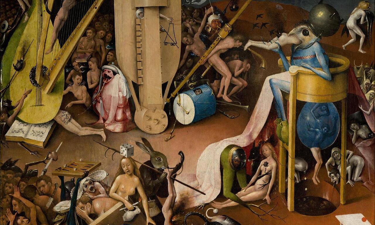 I usually have some art on my pc lockscreen and background. Right now I am using portions of a painting by Hieronymus Bosch - Garden of Earthly Delights, third panel. The third panel is a depiction of hell. My lockscreen is below and my background is right below that.