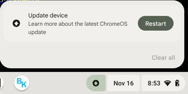 Posted by Blues King on November 16, 2025, 7:06 am They Never Sleep At Google. Your Chromebook is up to date Version 142.0.7444.147 (Official Build) (64-bit) 38 Message Thread Sunday Morning Update - Blues King November 16, 2025, 7:06 am Re: Sunday Morning Update - Nancy Q November 16, 2025, 8:36 am Re: Sunday Morning Update - JazzAzz November 16, 2025, 9:06 am Re: Sunday Morning Update - JazzAzz November 16, 2025, 9:07 am « Back to index
