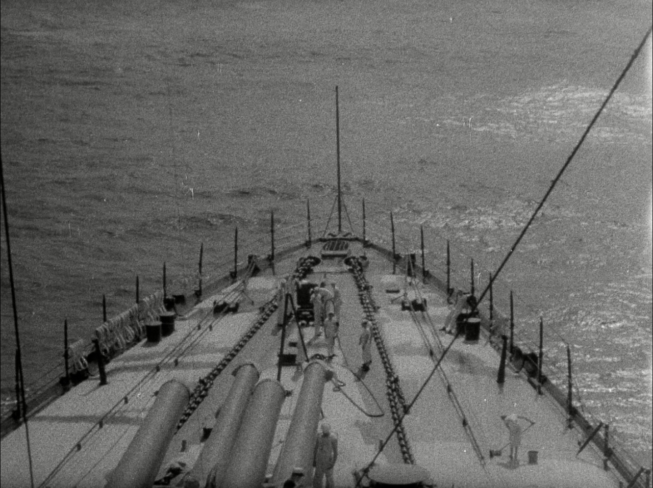 Here is a nice detailed shot of Maryland's fo'c'sle deck detail including how the Paravane rigging chains were stowed and also how she looked after her center anchor, chain, plate, and wildcat was eliminated.