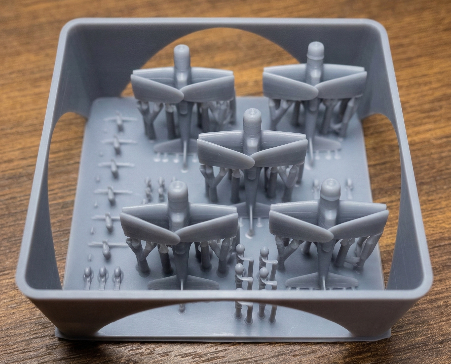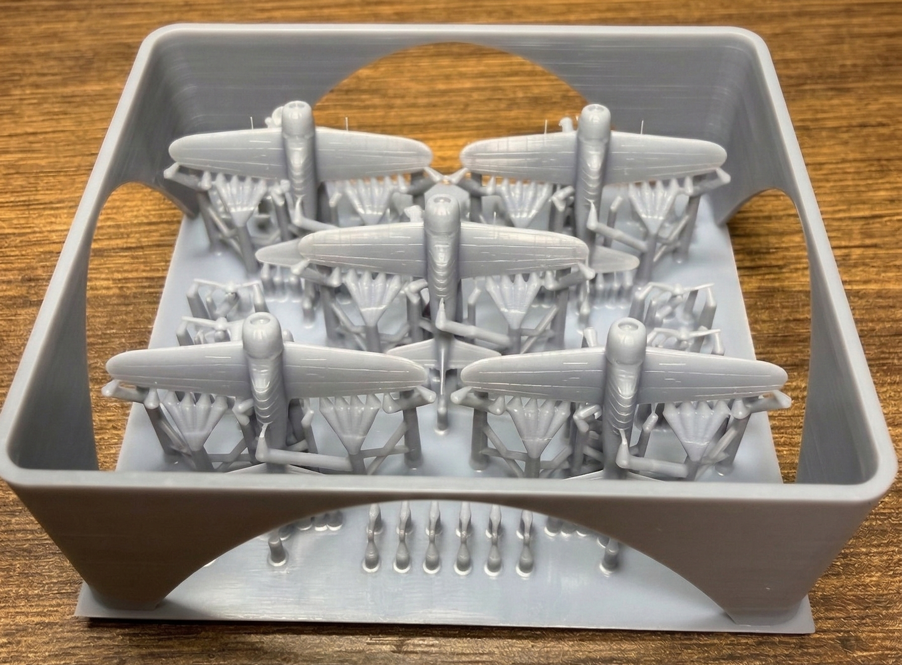 Wings folded: Raw realism to optimize space on the deck or in the elevators.