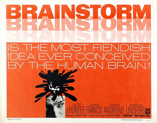 A Double Indemnity for the psyche-scarred Sixties, Brainstorm works from, modifies, and darkens that film's murderous-love-triangle template, while never sacrificing its own essence. Stripped of the earlier classic's sultriness and first-person narrative technique (unlike Walter Neff, Brainstorm's protagonist remains elusive throughout, thanks partly to Hunter's interesting, guarded performance, and the film's refusal to focus on developing his character) the film nevertheless succeeds at updating one of noir's most identifiable themes: boy meets girl; boy falls for girl; boy and girl plot to kill girl's husband. William Conrad, in the midst of a busy run of thrillers for Warner Brothers, eschews pastiche, and keeps his film fresh, linear, and free of needless frills.