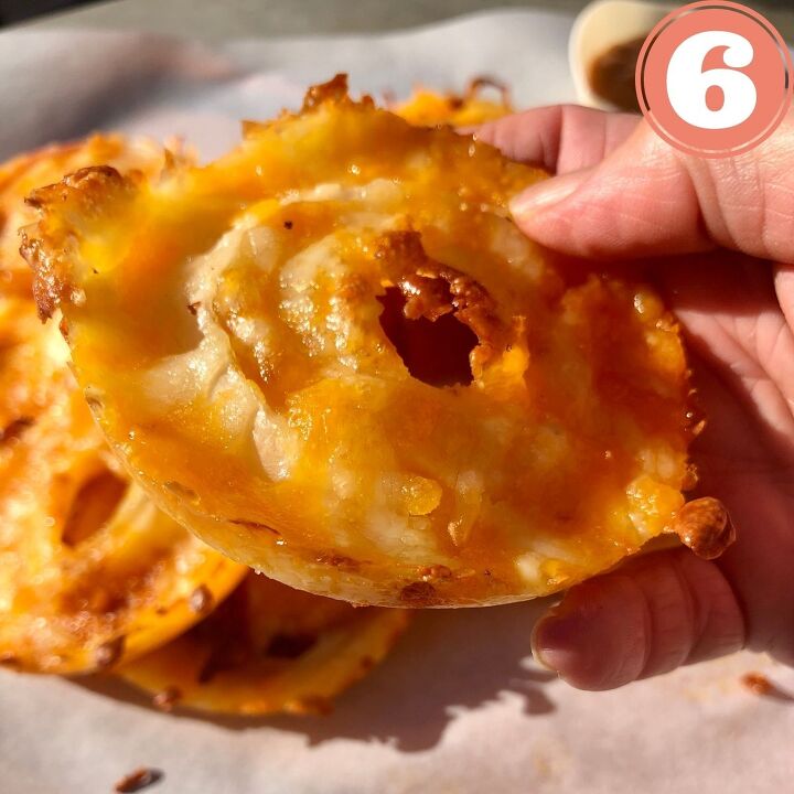 2. Place half of the shredded cheese in each ring of a donut pan.